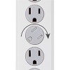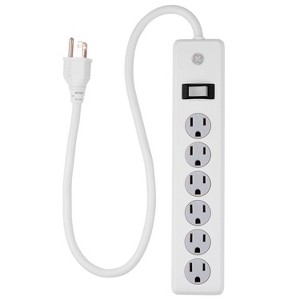 An integrated circuit breaker with reset switch and automatic shutdown technology protect your electronics if the capacity is exceeded by a power surge or the components expire. The surge protector is also equipped with twist-to-close safety covers, a heavy-duty grounded plug and keyholes for easy wall mounting options. This product is UL listed and backed by the highest standards of safety and performance. Get the most from your outlet with the GE-branded 6-Outlet Surge Protector. Model #14009