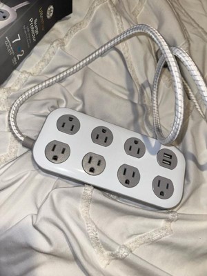 GE 7-Outlet Surge Protector with USB 1470J 2 USB-A (2.4A) 4' Braided Cord White and Gray: Extension Cord, Outlet Extender