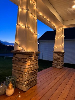 [This review was collected as part of a promotion.] I decided to use these lights in our front porch to wrap around two posts and go across the top however 300 lights were not enough. The lights are beautiful, clear, and gave the perfect ambiance for the holiday season. I will definitely buy another set to complete the look.