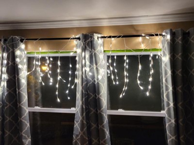 [This review was collected as part of a promotion.] I strung these up as I wanted dangling lights for our front window area for the holidays as I wanted the front of the house inside to be decorated as well. These lights work very well. The warm white is perfect for lighting our living room area considering we don't have a lamp or overhead lights in the area you can see very well with them on. The glow of them is well received by the eyes as you don't get an awful glare from them like the brighter Christmas lights that we have. The only part I don't like is that the non light part of the cord is too short so we had to run a cord up to the rod to plug in.