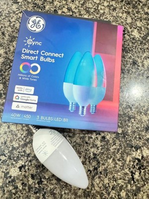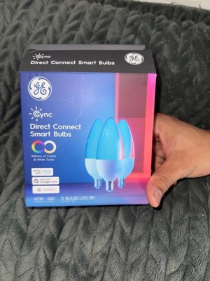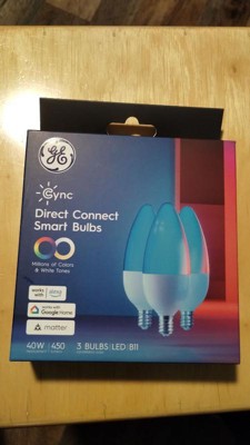 The Full Color Direct Connect GE Cync Smart Bulb makes it simple to add smart control to any fixture and change any room décor aesthetic. Use millions of colors to change a kids' room with their interests, to create a next level movie night, and support your team on game day with these color changing LED lights. Each smart indoor light bulb has a tunable white spectrum that supports your sleep/wake cycle and creates the perfect scene for winding down or waking up. Get added confidence with our smart WiFi bulbs by scheduling your lights via the Cync App, powered by Savant, so you never come home to a dark house. With the ability to control your lights away from home, these decorative LED light bulbs provide the added convenience of controlling your lights while away on vacation. The smart WiFi light bulbs also allow voice control with Amazon Alexa and Google Assistant smart home devices when your hands are full. With Matter compatibility, easily connect directly to leading smart home devices (sold separately) and apps such as Amazon Alexa, Google Assistant, Samsung SmartThings and Apple Home for hands-free voice control. These WiFi smart bulbs connect directly to a 2.4 GHz WiFi connection via the Cync App, no additional hardware needed.