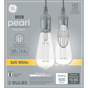 Elevate your décor with brilliance using GE Pearl Filament HD LED Soft White Light Bulbs. Designed to seamlessly blend into the background with classic charm of filament light bulbs with the efficiency and longevity of LED technology, Pearl Filament LED bulbs provide a timeless aesthetic of sophistication. Compared to standard yellow LED filaments that disrupt a fixture’s aesthetic, the subtle filament and clear glass beautifully accentuate decorative fixtures offering room light with a soft white cozy glow. Whether you’re looking to brighten your bedroom lights and work lights or add ambiance to a dining area - together with high-definition, comfortable lights, Pearl Filament lights elevate the charm of your lights when on or off. With a lifespan of up to 15,000 hours, our bulbs are built to last, reducing the hassle and cost of frequent replacements. These are also dimmable bulbs, allowing you to dim and customize the brightness to suit any occasion or mood. Our clear light bulbs are available in a variety of shapes and sizes to fit standard light fixtures with an E26 medium base or an E12 small candelabra base. Upgrade your room décor today with the perfect balance of elegant charm and efficiency with GE Pearl Filament HD LED Light Bulbs.
