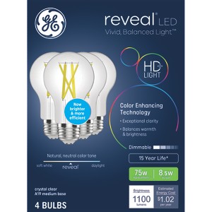 GE 4pk Reveal LED 75W Bulb Clear A19 New