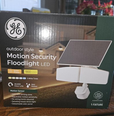 [This review was collected as part of a promotion.] We had a cheap brand of motion sensor light before that didn't last long, so now we have this GE Motion Security Floodlight brand that is very sturdy and already included a solar power so I can install it everywhere that doesnt need near the outlet. Install this at the top of my garage for a month now, and it's very bright, especially this summer, that it's very hot and sunny in the morning. Very recommended!