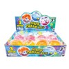 A tsunami of fun at your fingertips! Each bouncing ball features a mesmerizing oil and water mixture filled with glitter and a tiny figure—panda with pink liquid, ducky with blue, and astronaut with orange. Watch the glitter swirl and the figure ride the waves as you spin, bounce, and squeeze. Approx. 2.25” in diameter. 12 per display.