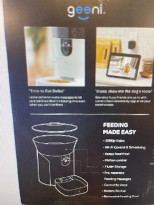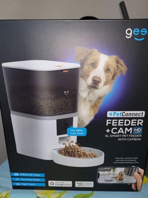 View live, control meal portions and schedule automated feeding times with the Geeini Feeder + Cam 6L Smart Pet Feeder with Camera. Leave personal messages to let your pal know that it's snack time even when you can't be there. See what your furry friends are up to with camera feed viewable by app or on your smart screen.