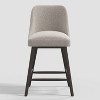 Bring comfort and high style to your seating options with the Geller Counter Height Bar Stool in Milano Elephant from Threshold™. It features an armless design with a subtly angled backrest for comfortable sitting, along with a well-padded seat and footrest bars for the perfect place to sit and enjoy conversation over food or drinks. Complete with a dark finish on the rubberwood frame, and upholstery with a boucle texture for a soft feel and chic look you’ll love.
