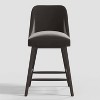 A: The barstool is upholstered in lustrous velvet fabric, providing a luxurious look.