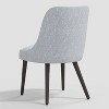 Upgrade your dining furniture with this Geller Modern Dining Chair in Geometric from Threshold™. This stylish dining chair features a modern armless design. Upholstered in cotton fabric with an abstract geometric pattern, it brings a contemporary look to your decor. The foam-filled padded seat and curved backrest provide comfortable sitting, and the splayed wooden legs in a dark espresso finish lend stability, support and added style. Coordinate with matching furniture pieces to lend cohesive flair.
