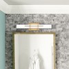 The Gemini bath light collection is the perfect updated look for a contemporary bathroom. The modern style of this vanity fixture is available in an aged brass, matte black, or polished chrome finish, and is paired with an opal etched glass shade. The integrated LED light source provides energy saving, long lasting performance, and is low maintenance. The fixture can mount vertically or horizontally to suit your desired ambience.