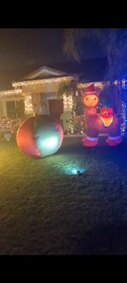Decorate with a huge velvet Airblown Inflatable ornament! Featuring soft, velvety red and gold metallic fabrics, this stunning Christmas inflatable makes an eye-catching addition to your outdoor Christmas decorations. Includes a loop for hanging and an external spotlight that stakes into the ground. Setup is super simple. Just plug it in, hang it and watch the magic unfold. Includes everything needed for easy outdoor setup.