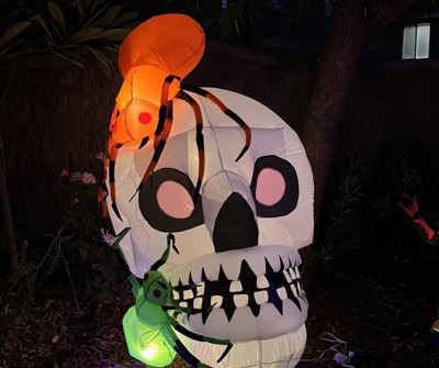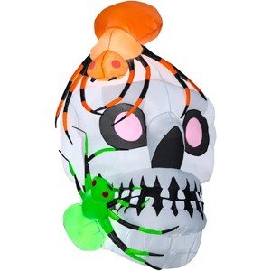 Gemmy Airblown Inflatable Skull With Spiders, 5.5 ft Tall, White