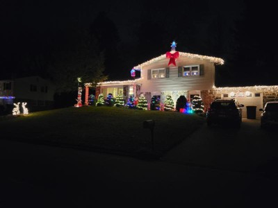 Decorate with a huge velvet Airblown Inflatable Christmas bow! Featuring soft, velvety red fabric, this stunning Christmas inflatable makes an eye-catching addition to your outdoor Christmas decorations. Includes a loop for hanging and an external spotlight that stakes into the ground. Setup is super simple. Just plug it in, hang it and watch the magic unfold. Includes everything needed for easy outdoor setup.