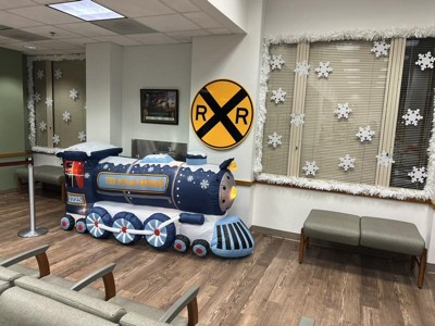 Be the talk of the block with a giant Airblown® Inflatable Polar Express Train! At 9-ft wide, our Polar Express inflatable makes an impressive addition to your outdoor Christmas decorations. Styled with navy blue, snowflake accents and the Polar Express logo, this amazing train inflatable is perfect for fans of the classic Christmas story. Set up is in a snap for the easiest decorating ever. Just plug it in, stake it down and watch the magic unfold. Includes everything needed for easy outdoor setup.