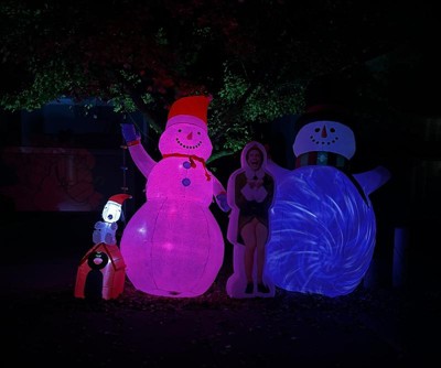Make Christmas extra fun with this Airblown® Inflatable color changing snowman! Featuring a snowman with shiny, iridescent fabric, this delightful inflatable makes an eye-catching addition to your Christmas decorations. Color changing lights add to the festive fun. Setup is super simple. Just plug it in, stake it down and watch the magic unfold. Display this Christmas inflatable as a standalone or combine it with other Airblown Inflatables to create a custom scene. Includes everything needed for easy setup.