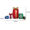 Deck the yard with the Inflatable Set of Gifts. The Fuzzy Gift Box Scene 7.5 FT Length features beautiful metallic fabrics made of durable versatile fabric. This stunning Christmas inflatable makes an eye-catching addition to your outdoor Christmas decorations. Setup is super simple. Just plug it in, stake it down and watch the magic unfold. Includes everything needed for easy outdoor setup. Dimensions: 90.16" x 36.22" x 53.15"