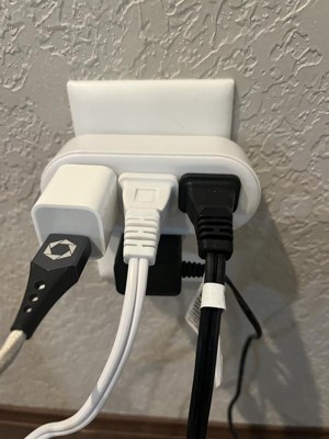 This outlet extender works well. It plugs in to an outlet and does not obstruct the other outlet (see photo). It stays in place pretty well and supports up to 3 plugs. Rounded edges are nice. I wish it also had surge protection built in, but it is still a nice option without it.