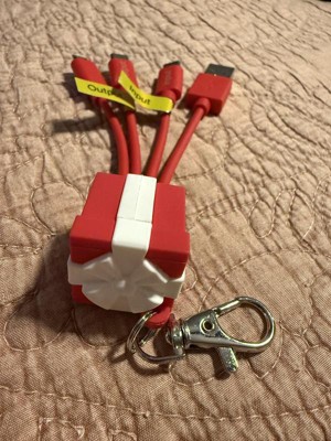 This keychain charging cable comes with 4 tips. USB-A, Micro USB, and 2 USB-C charging ports. It’s super convenient when you have different types of devices using different cords. You can only charge 1 device at a time though. Makes a good Christmas gift.