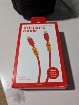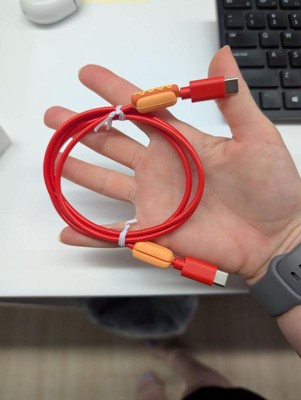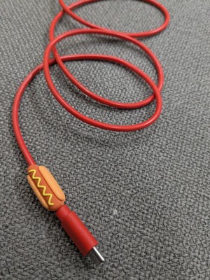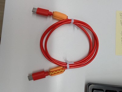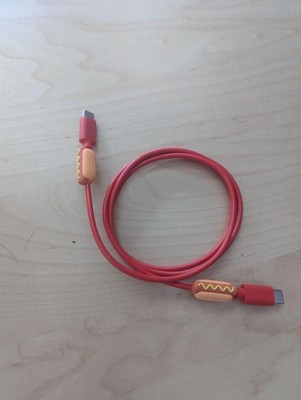 [This review was collected as part of a promotion.] This charging cable is 3 feet long and has a cute hotdog on either end. It has two USB-C ends. It feels sturdy and does a good job of charging my phone.