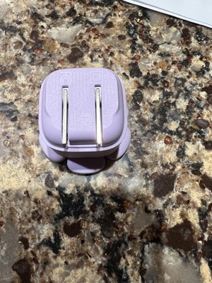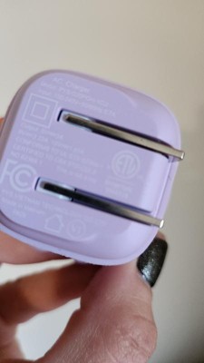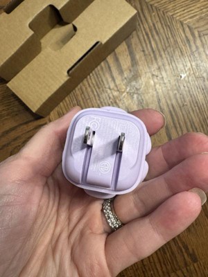 This cute, purple, flower-shaped design, a 20 watt max output USB-C foldable, wall charger was easy to use. I loved that it was compatible with all my devices and charged up quickly in a timely manner