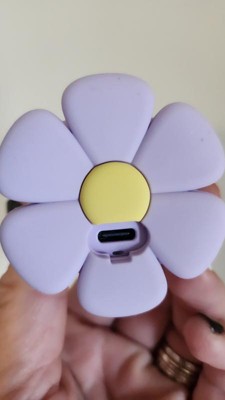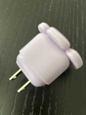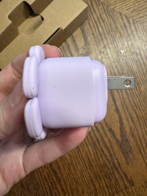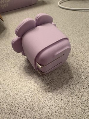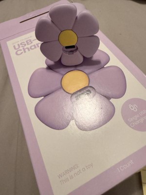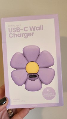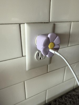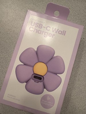 This USB-C wall charger is just darling! I love the light purple flower - it is a soft, silicone feeling material. The plug in the back folds in which is great for storage or traveling. So far I have not had any issues!