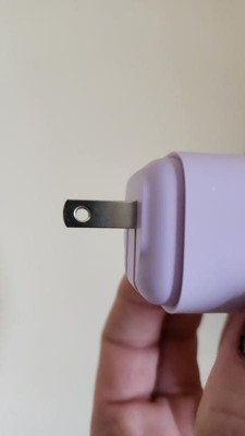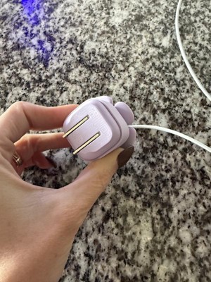 This cute, purple, flower-shaped design, a 20 watt max output USB-C foldable, wall charger was easy to use. I loved that it was compatible with all my devices and charged up quickly in a timely manner.