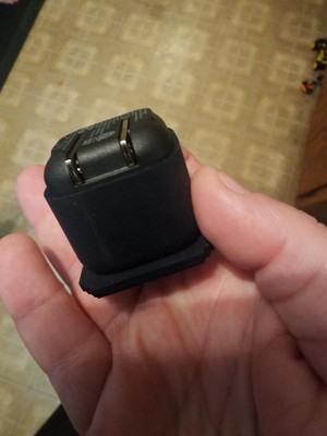 This little brick is awesome! It’s smaller than I was expecting, which is a good thing - I was worried it would take up a lot of space in a power strip or outlet. It is fun compared to all of my boring little solid colored bricks. The video game portion of it is a soft bendable material so I imaginethis can fit into tight places.