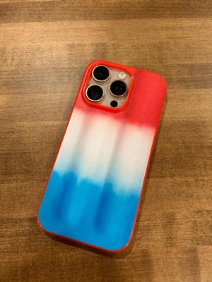 [This review was collected as part of a promotion.] It is a nice flexible plastic material that is easy to get on but also gives a nice snug fit to the phone without coming off easily. The bomb pop picture on the back has a more rough texture making it easy to grip. My daughter loves the design for summer time. All charging ports and buttons are still easily accessible. The front does not obstruct the screen at all and has a nice vibrant red around it from the case. Overall fun case.