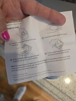 I think this keyboard cleaning gel does a pretty good job at removing most dust and crumbs from the keyboard. I also used it in my car to see if it would get dust and dirt off of small spaces and it wasn't perfect but it did help to pick up small dust and crumb particles. I have to hide this from my five year old because he thinks it's slime that he can play with.