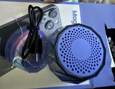 The mini magnetic speaker is a great portable device that puts out good sound. The set up is easy as you can go to the Bluetooth on your phone and connect to the speaker to begin listing in seconds. Once connected you can control the volume from your phone. The speaker gives off a cool blue light which is a cool effect. You can also add it to a phone with MagSafe. I would definitely recommend!!