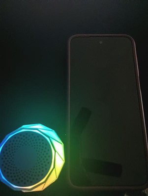 Small speaker that would be perfect for a small outdoor gathering or to play music in a room. It's a cute color and the colored lights are fun and playful. Kids would like it for games or dance parties while playing music from your phone.