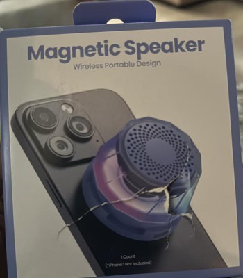 I really thought this was some sort of magnetic induction speaker, but it's not. It's literally just a speaker that is connected by Bluetooth, so it doesn't have to be glued to your phone. I think a lot of people may stick this magnet to their non-mag safe case (for no reason) and mess up their phone. I'm just using it as a regular Bluetooth speaker. I like the lights.