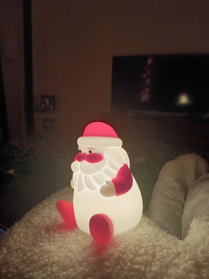 This light up desk top Santa is super cute for any area. I will using mine for my desk at work, the light is not too bright and with just one squeeze it lights up, love the idea super cute and super fun
