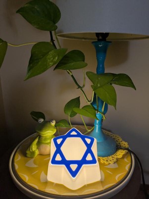 This Star of David soft touch looks nice and has a nice glow when turned on. There are two levels of light and it is pretty simple to press, just have to press deeply to get it to change color or off/on. There is a power button on the bottom as well.