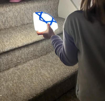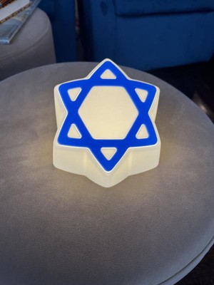 This Star of David soft touch looks nice and has a nice glow when turned on. There are two levels of light and it is pretty simple to press, just have to press deeply to get it to change color or off/on. There is a power button on the bottom as well.