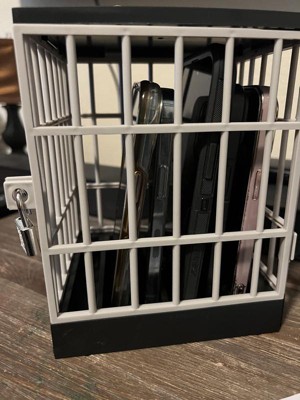 This phone jail is great for putting phones in during meals, family time, etc, but definitely not sturdy enough to keep phones locked up for consequences. It’s flimsy and my 6 year old figured out the key to the lock is the same key as his and his sister’s journals. Cute idea, though