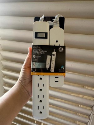 - Multipack – Combo pack includes two white surge protectors for a total of eight grounded outlets and two USB-C ports, perfect for powering electronics, household appliances, lamps, seasonal décor, smartphones, tablets and more