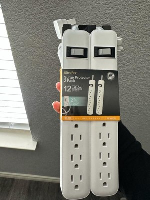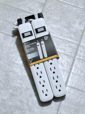 Experience expanded power with this GE Surge Protector 2 Pack. With a total of 12 grounded outlets, these surge protector power strips transform regular outlets into versatile, efficient powering stations. Each surge protector has a durable 2ft. braided cord that extends power where you need it most. Additionally, these outlet extenders feature convenient keyhole slots for quick, easy mounting to a wall, desk, workbench or counter. Designed to safeguard your connected equipment, these impressive surge protectors feature integrated circuit breakers with reset switches that cut the flow of electricity to prevent overload conditions. Additionally, in the event of a surge, these power strips include 245 Joules of surge protection backed by a $25,000 connected equipment policy to keep your essential devices safe from damage. These devices are ETL safety certified and are backed by a limited-lifetime no-hassle replacement plan so you can enjoy worry-free protection. Get the most out of your outlets with this GE Surge Protector 2 Pack.