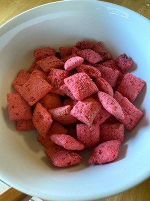 [This review was collected as part of a promotion.] This cereal is okay. I was not a fan of the taste. They tasted more like chocolate than strawberry. I thought it was cool how the center had chocolate in them. I like that the color reminds me of a fresh strawberry but again, I couldn't really taste strawberry