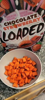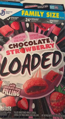 - CONTAINS: One cardboard box of crunchy Chocolate Strawberry Loaded Cereal with Chocolate Creme Flavored Filling, 18.1 oz; Perfect for instant snacking, or a part of breakfast and meals