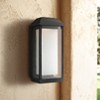 Simplicity and elegance lead to a romantic aesthetic perfect for outdoor lighting, and this LED outdoor wall light makes its mark mounted to a residential or business structure. From the McHenry collection by Generation Lighting, this tasteful light offers an elongated modified lantern design with a textured black finish over stonestrong construction. Clear seeded glass panels embellish its old village motif to create a lovely accent. This energy-efficient light averages 50,000 hours of life at three hours of daily use.