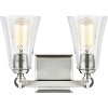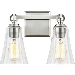 Elevate your home decor with this stunning contemporary two-light wall sconce from Generation Lighting. Anchored by a crisp, satin nickel finish steel backplate, this sophisticated light is topped with a clear seeded glass shade. This lamp can conveniently be mounted up or down.