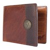 TOP GRAIN LEATHER: Genuine top grain leather features western buck design on wallet exterior