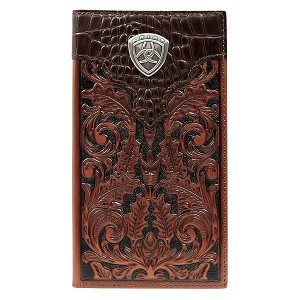 Generic Men s Tooled Oak Front & Gator Print Top Shield Leather Rodeo Brown