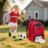 - Special Insulated Pocket: There is a cooler pocket in one side of the soccer backpack, and another side of the sport bag is mesh pocket. The cooler pocket can fit mini can of drinks and wet towel. In another side, the mesh pocket is big enouth for a bottle of water and umbrella.