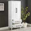 Versatile kitchen organization and storage with classic styling make the Genevieve Storage Pantry a perfect addition to your home. Featuring adjustable shelves and cable management holes, this freestanding storage cabinet accommodates everything from kitchenware to electronics. Two lower drawers offer ample storage for things like cooking utensils, office supplies, or even extra blankets. Scaled to fit any size room, this pantry is kitchen organization at its finest. Assembled dimensions 24” w x 14” d x 60” h