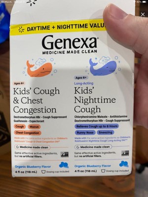 - NIGHTTIME RELIEF: Genexa Kids' Long-Acting Nighttime Cough blueberry helps relieve cough for up to 8 hours to help kids rest and temporarily relieves runny nose, sneezing and itchy, watery eyes. For children ages 6 and over.