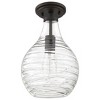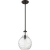 Available as a mini pendant or semi-flush mount light, the Genie collection is perfect for a variety of interior settings. The clear glass shade features a soft rippling design that complements any coastal or transitional style. Genie is available in your choice of brushed nickel, polished chrome, or old bronze finish. Due to the glass being handmade, the swirl pattern is unique to each piece and may vary slightly.