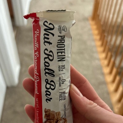 The Genius Gourmet 10 g of protein nut roll bars are absolutely delicious and taste like a payday with no added sugar and packed with protein. They are one of my favorite snacks with the caramel the vanilla texture inside and the crunchy peanuts on the outside hands-down one of my favorite protein treats and it taste like a candy bar.