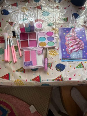 [This review was collected as part of a promotion.] I was surprised at how much stuff was in this makeup kit! It is sooo cute and the colors were pretty pigmented. There's no overly weird smells which is a plus. I love the little nail polishes. It came up easily off my bench when my daughters spilled a bit of the polish. The headband is such a cute little feature as well. They have been playing with it nonstop. The case is a touch flimsy but nothing you wouldn't expect. I will end up having to buy this set again when we, rather quickly, use all the makeup.
